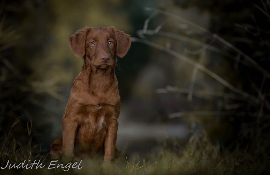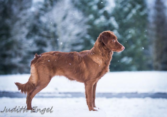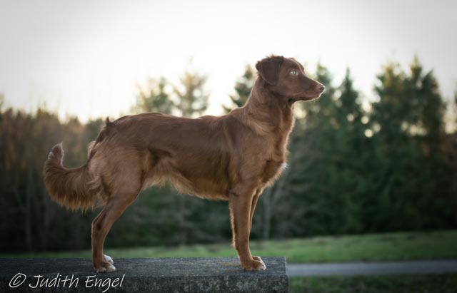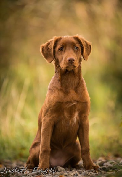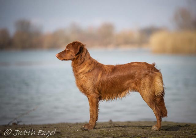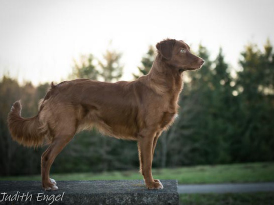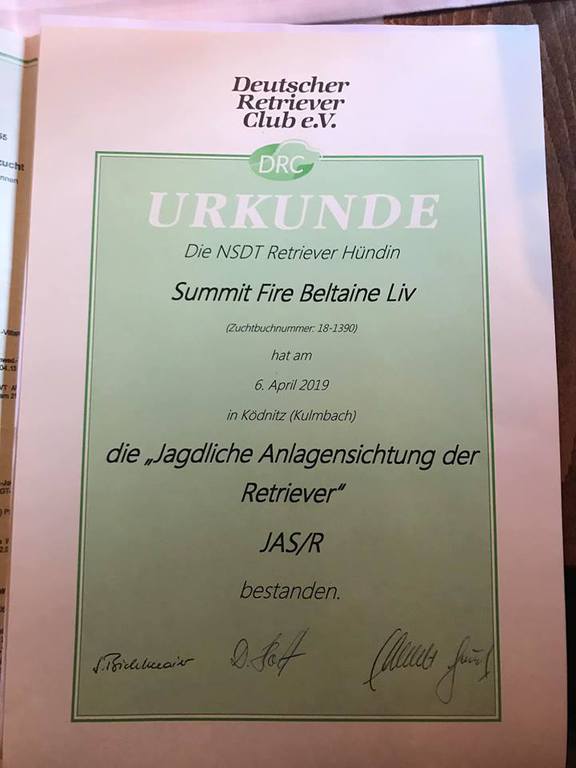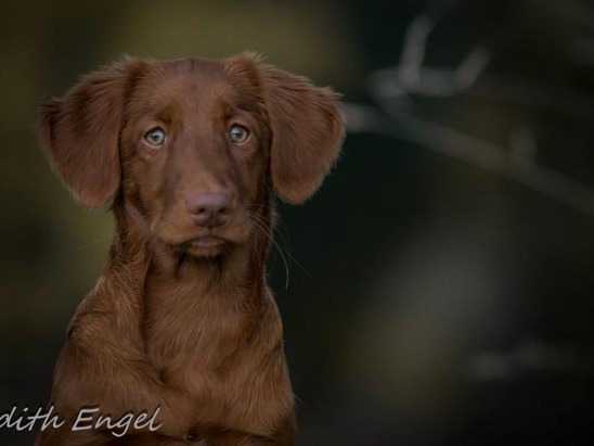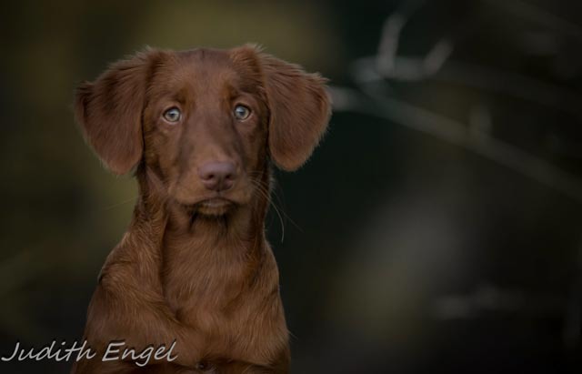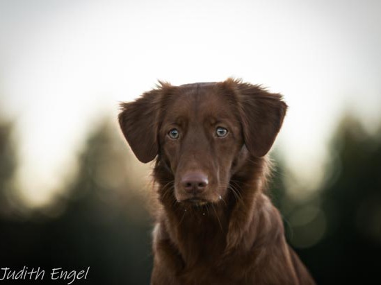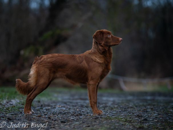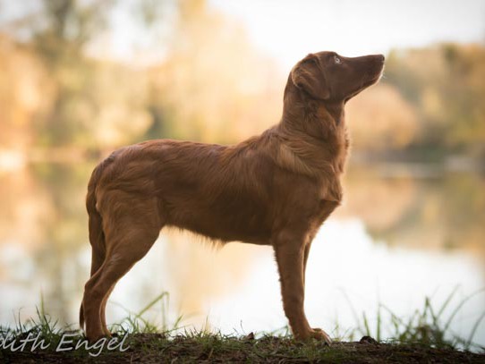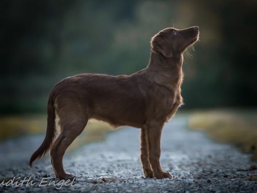 Sehr freundliche aufgeschlossene Hündin, etwas gestreckt aufgebaut, fem. Kopf mit typischem Ausdruck, schräge Schulter + Oberarm, sehr gute Tiefe + Vorbrust, sehr gute Hinterhand Winkelung + Pfoten, dunkles Haarkleid von sehr guter Textur, Knochenstärke zum Körper passend, läuft mit gutem schub flüssig frei, hinten etwas eng, wird bestens präsentiert.
