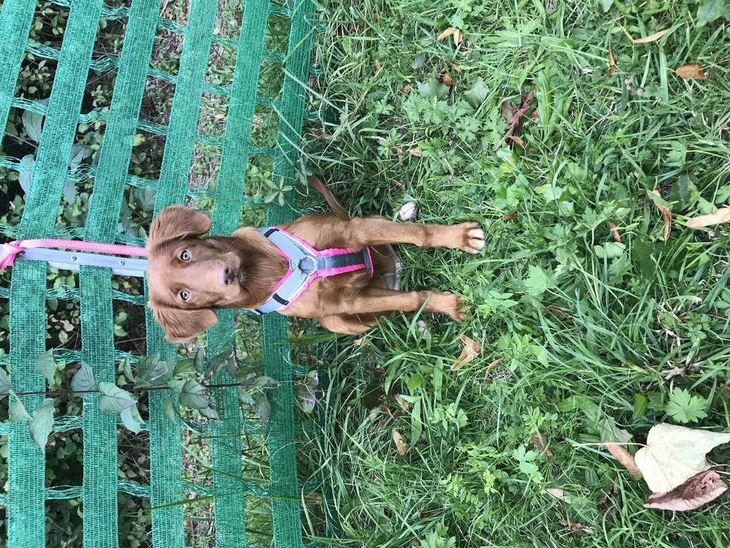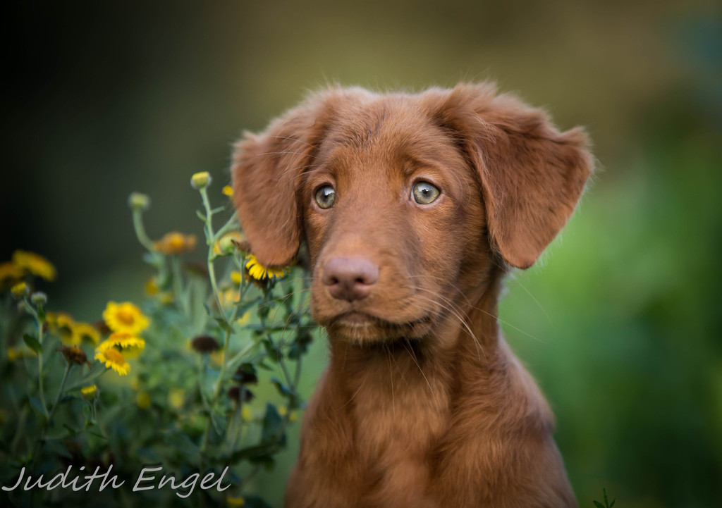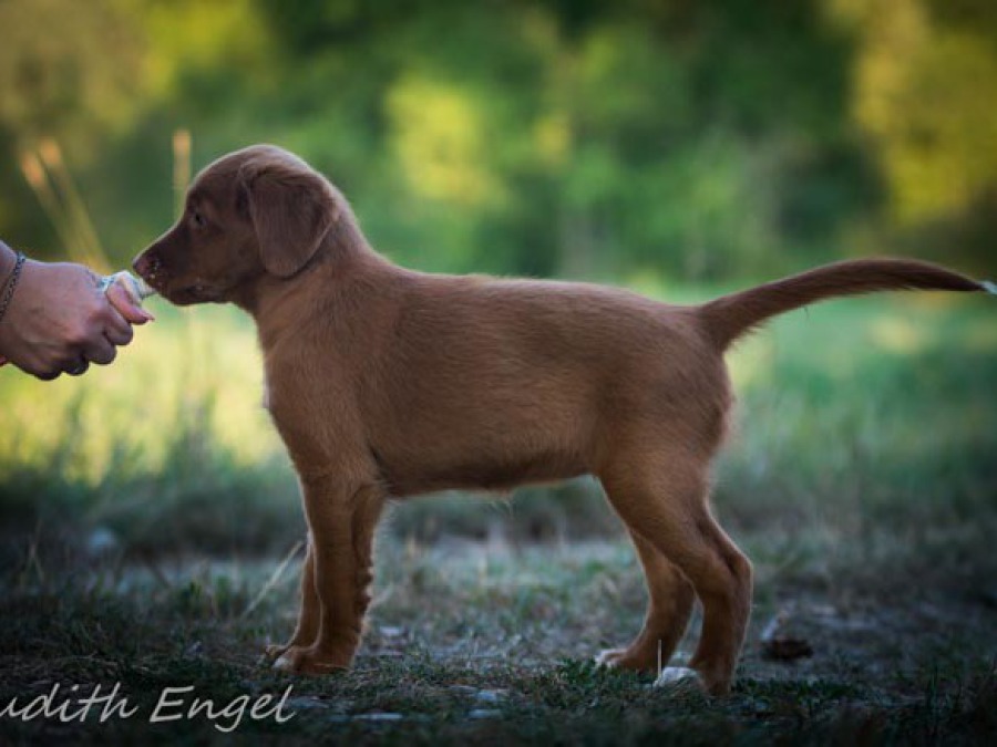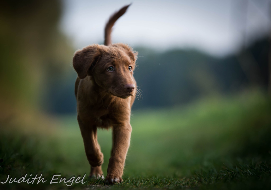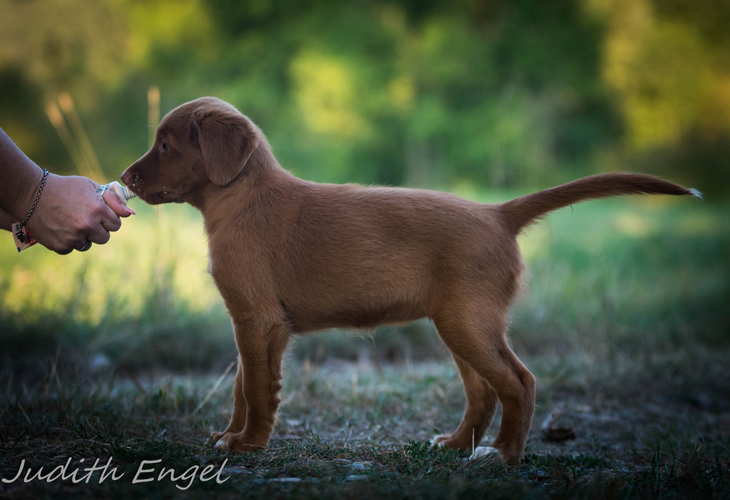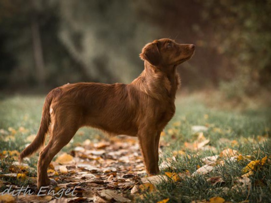 Sehr freundliche aufgeschlossene Hündin, etwas gestreckt aufgebaut, fem. Kopf mit typischem Ausdruck, schräge Schulter + Oberarm, sehr gute Tiefe + Vorbrust, sehr gute Hinterhand Winkelung + Pfoten, dunkles Haarkleid von sehr guter Textur, Knochenstärke zum Körper passend, läuft mit gutem schub flüssig frei, hinten etwas eng, wird bestens präsentiert.
